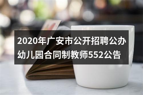 为推进我市学前教育改革发展,加快公办学前教育改革发展示范市建设,努力办区域性最好的教育,根据《广安市公办幼儿园合同制教师招聘管理办法》,按照公开、平等、竞争、择优原则,我市决定面向社会公开招聘公办幼儿园合同制教师552名。现将有关事项公告如下: