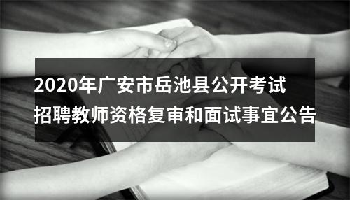 根据中共广安市委组织部、广安市人力资源和社会保障局、广安市教育和体育局、广安市卫生健康委员会《关于2020年广安市公开考试招聘事业单位工作人员的公告》规定,现将岳池县2020年公开考试招聘教师资格复审和面试事宜公告如下。