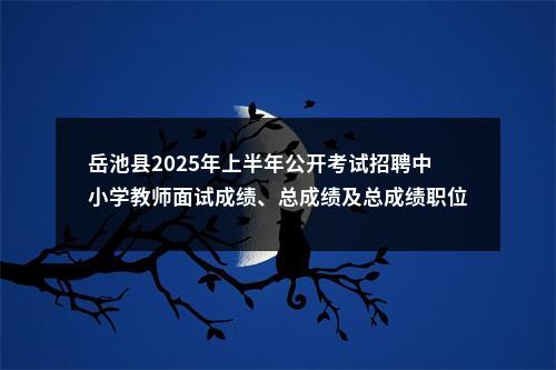 根据《广安市2025年上半年公开考试招聘中小学教师公告》规定,现将岳池县2025年上半年公开考试招聘中小学教师面试成绩、总成绩及总成绩职位排名予以公示(详见附件)。