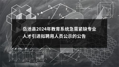 原标题:岳池县教育科技和体育局、岳池县人力资源和社会保障局关于岳池县2024年教育系统急需紧缺专业人才引进拟聘用人员公示的公告