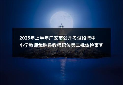 根据《四川省广安市2025年上半年公开考试招聘中小学教师公告》有关规定,现将2025年上半年广安市公开考试招聘中小学教师武胜县教师职位第二批体检有关事宜公告如下。