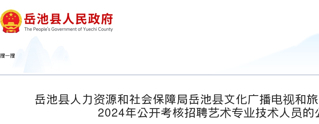 声明:专注 岳池县人力资源和社会保障局岳池县文化广播电视和旅游局关于岳池县2024年公开考核招聘艺术专业技术人员的公告 相关岗位分析;专业指导面试技巧;保障就业成功概率。