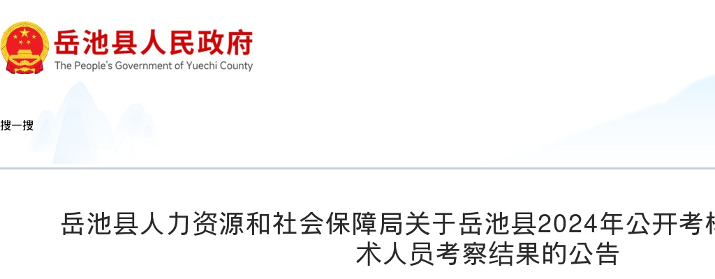 原标题:岳池县人力资源和社会保障局关于岳池县2024年公开考核招聘艺术专业技术人员考察结果的公告