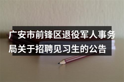 因工作需要,广安市前锋区退役军人事务局面向社会公开招聘见习生2名,现将有关事项公告如下。