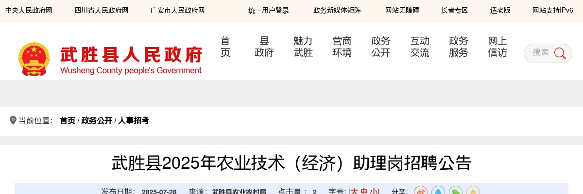 【武胜县2025年农业技术(经济)助理岗招聘公告(202人)】相关岗位: