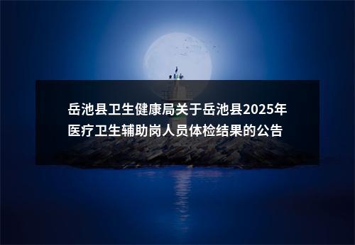 原标题:岳池县卫生健康局关于岳池县2025年医疗卫生辅助岗人员体检结果的公告